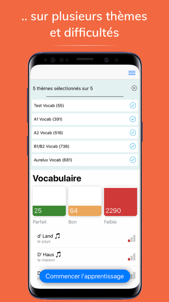 Avec plus de 3000 mots et audios, cette nouvelle application vous aide à vous entraîner sur le vocabulaire luxembourgeois. Wuertschatz vous aide à repérer vos difficultés et à les surmonter grâce à son algorithme intelligent. Choisissez une ou plusieurs thématiques, et testez vous !​